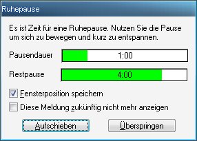 Erinnerung an kurze Ruhepausen (um Haltungsschäden vorzubeugen)